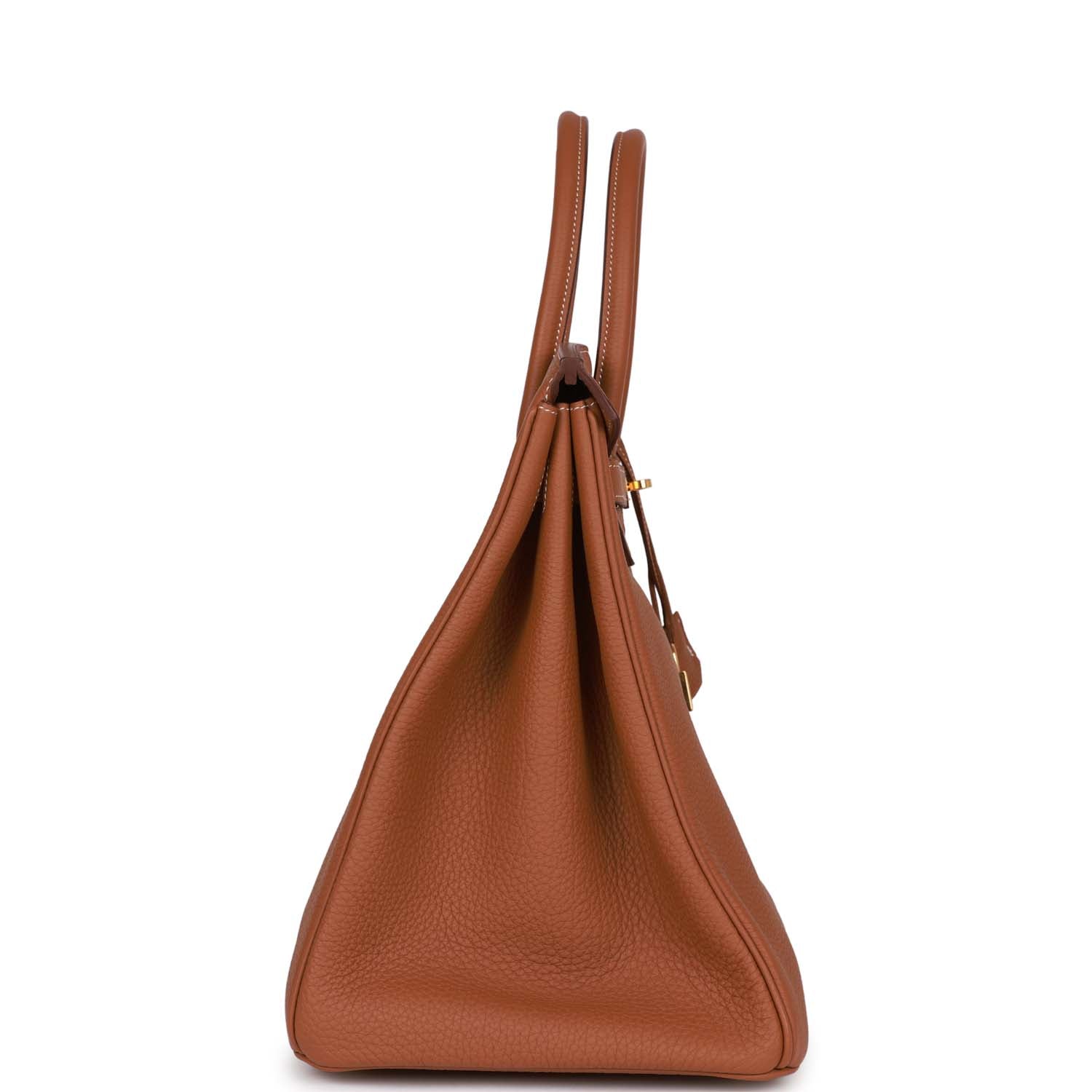 This Birkin is in Gold togo leather with gold hardware and has contrast stitching, two straps with front toggle closure, clochette with lock and two keys and double rolled handles.