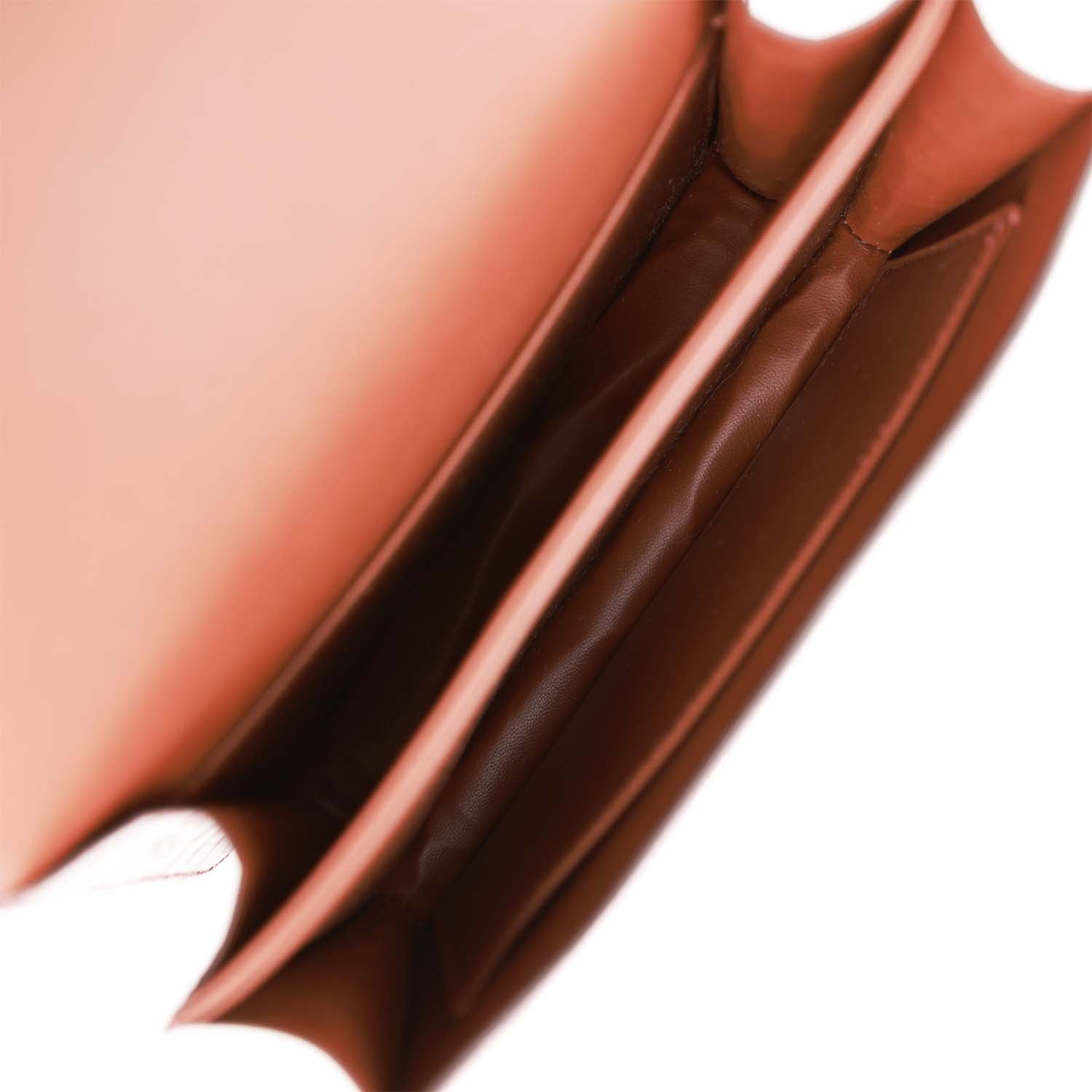 This Constance is in Miel shiny alligator with gold hardware and features tonal stitching, a "H" snap lock closure, and an adjustable shoulder strap.