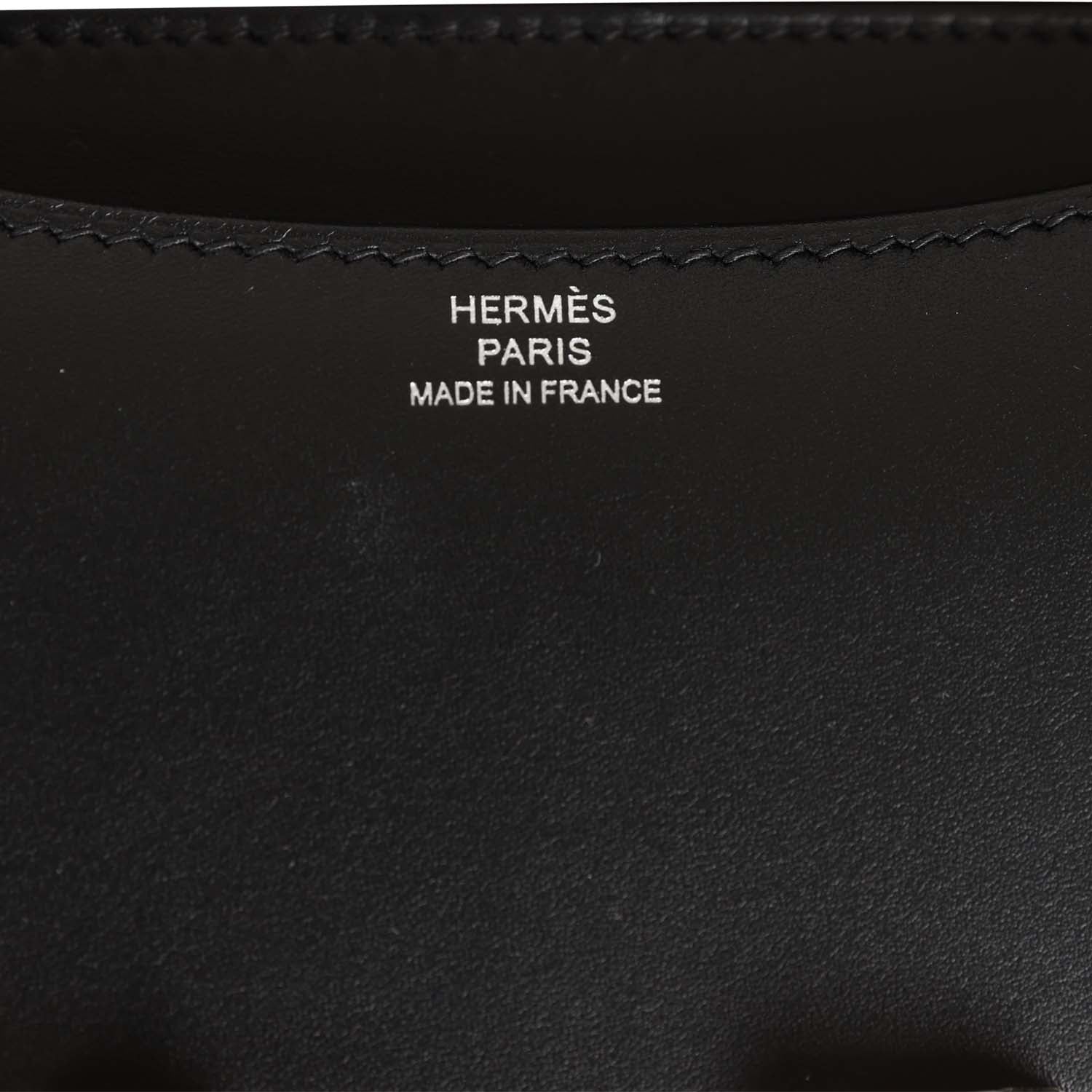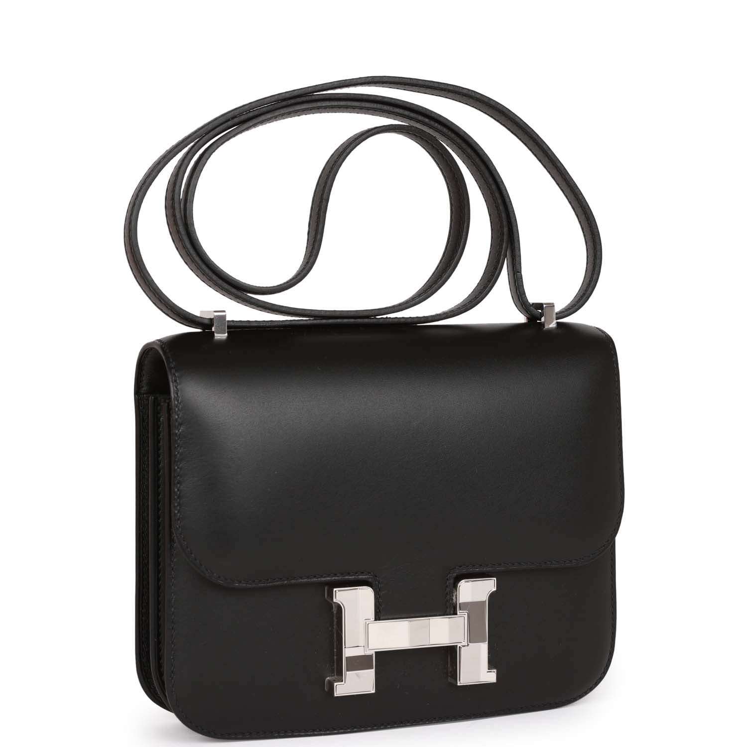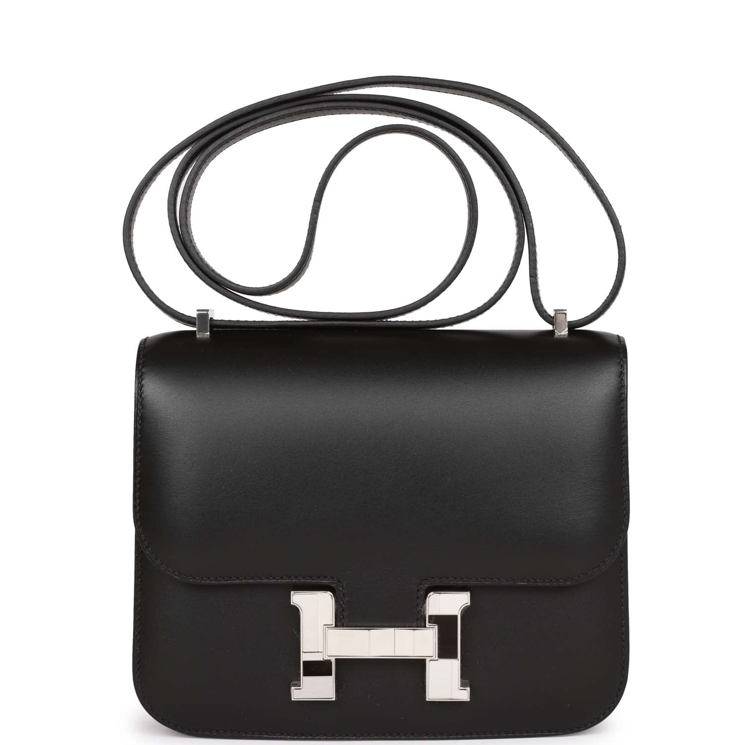 This Constance 18cm is in Studio Disco Black swift leather with palladium hardware and has tonal stitching, a metal "H" snap lock closure and adjustable shoulder strap.