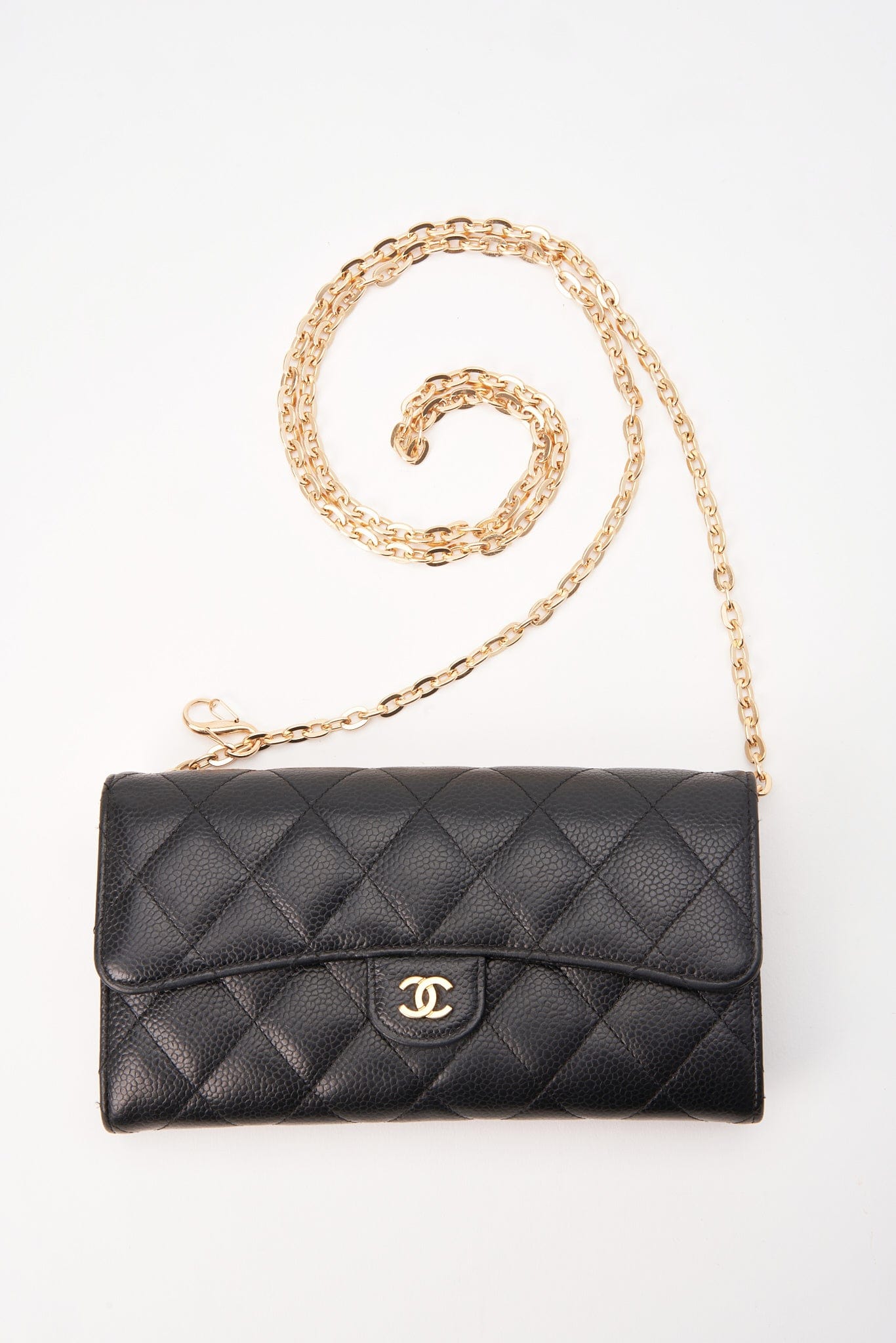 Included with this wallet is a felt and chain insert, this allows you to convert your wallet into a crossbody bag. Please note that this chain/felt addition is not made by Chanel.