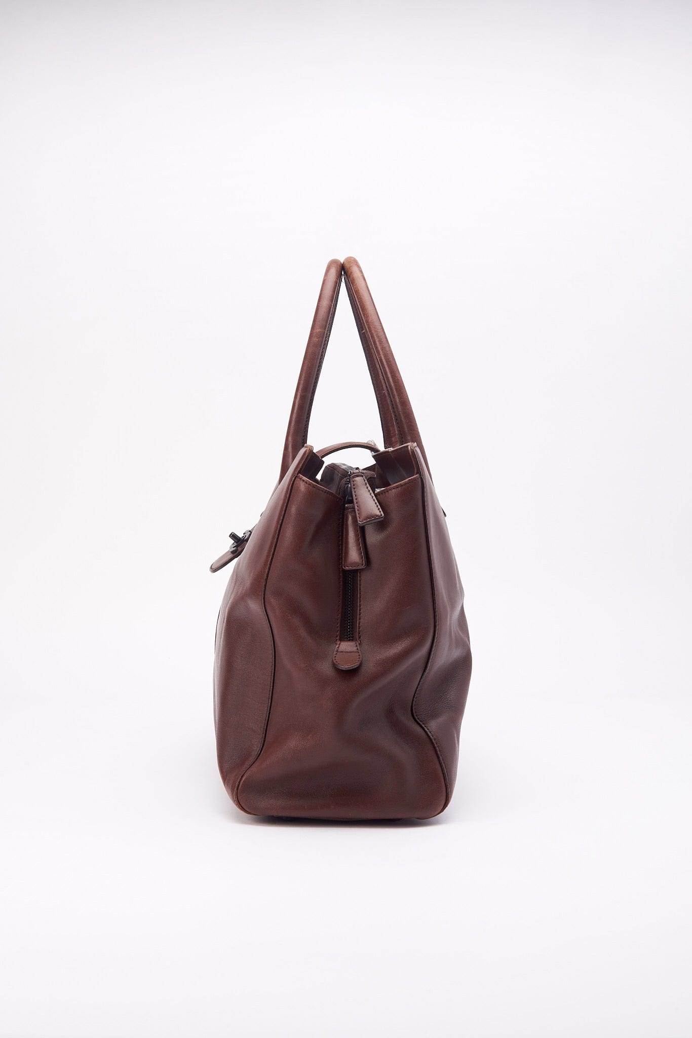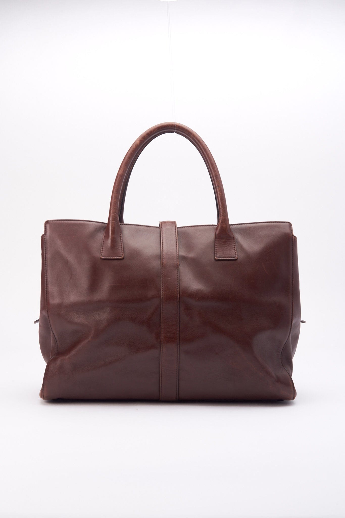 A beautiful Chanel brown leather tote bag with CC turn-lock black hardware. A great everyday work bag or travel bag, fits a lot inside. Comfortably fits a laptop.