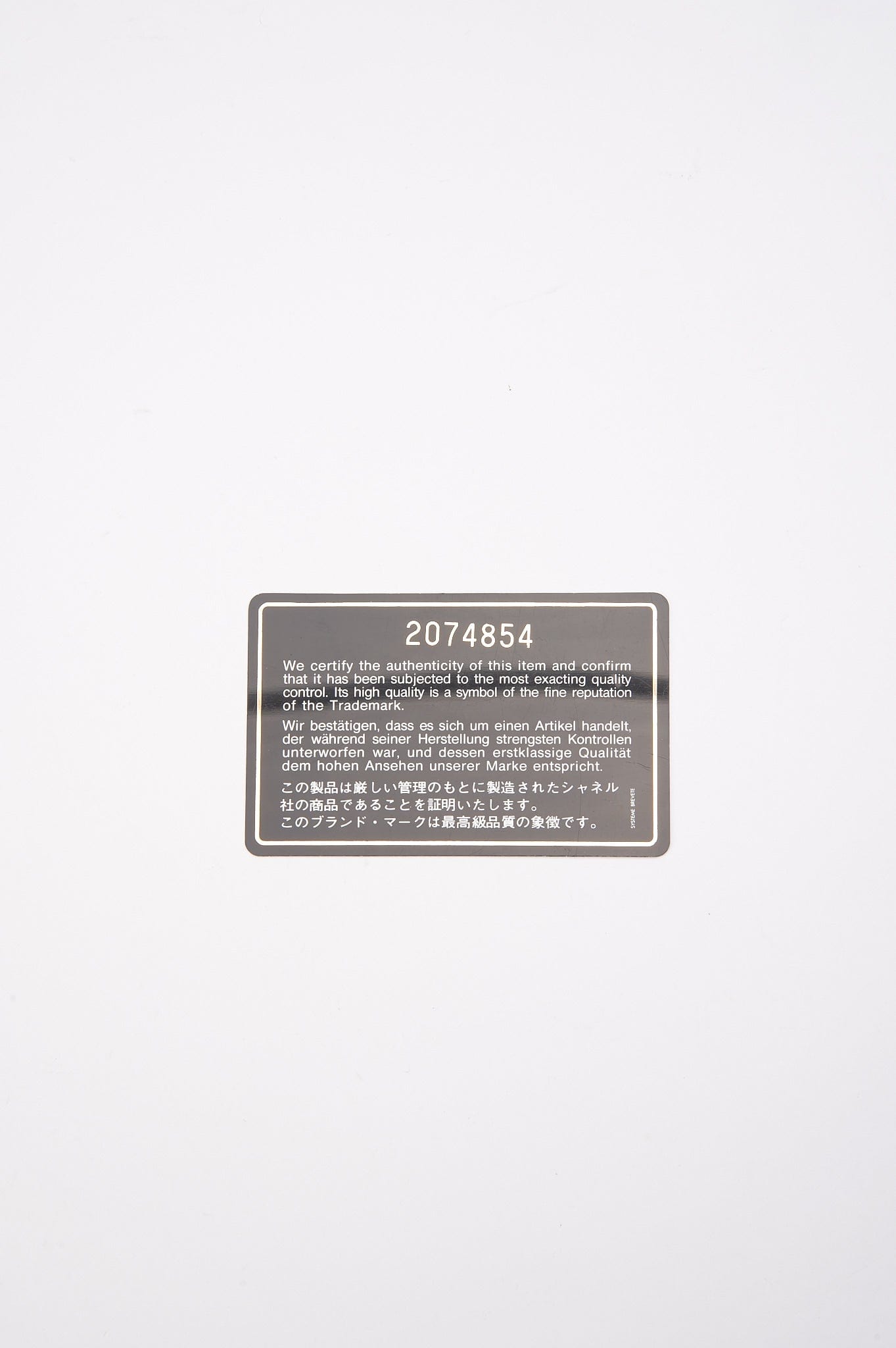 The serial number on the card tells us the bag was made between 1991 and 1994. This bag is in good vintage condition with some minor signs of use. The hallmark on the CC turn lock confirms the gold hardware is plated in 24K gold, a real collectors item. Before 2008, Chanel Classic Flaps with gold coloured hardware (chains, clasps, grommets, and CC turn locks) were all plated in real 24K gold.