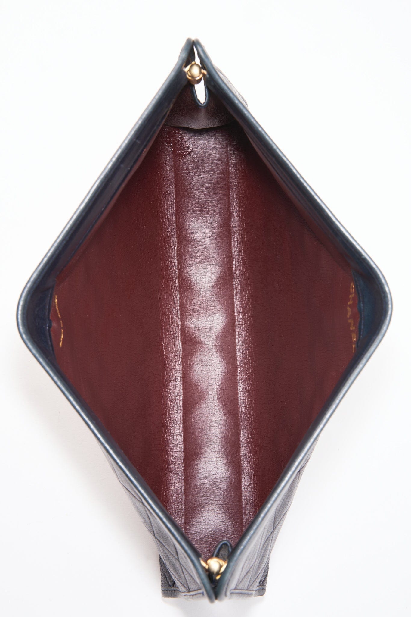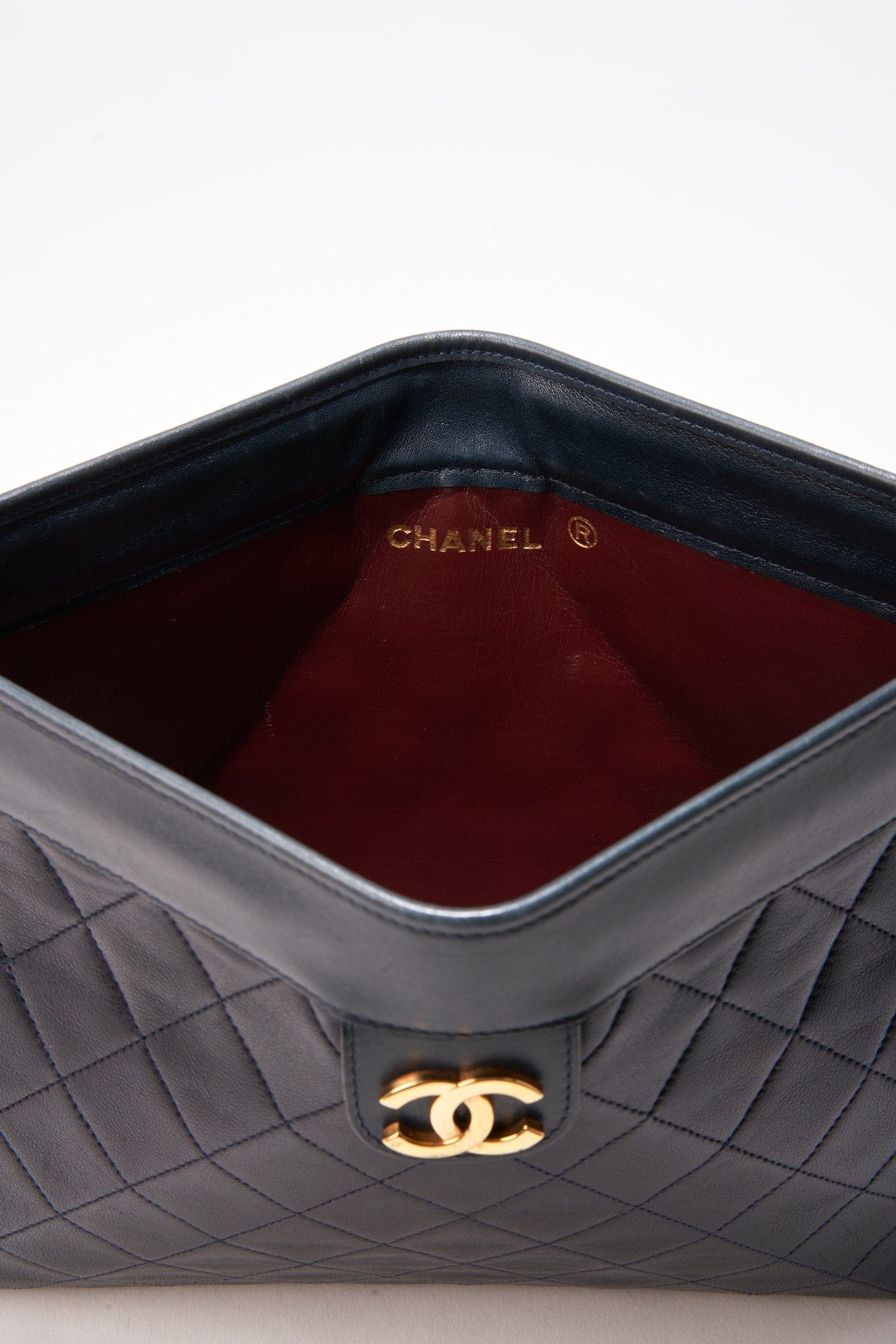Inside this bag is lined with the classic Chanel burgundy leather.